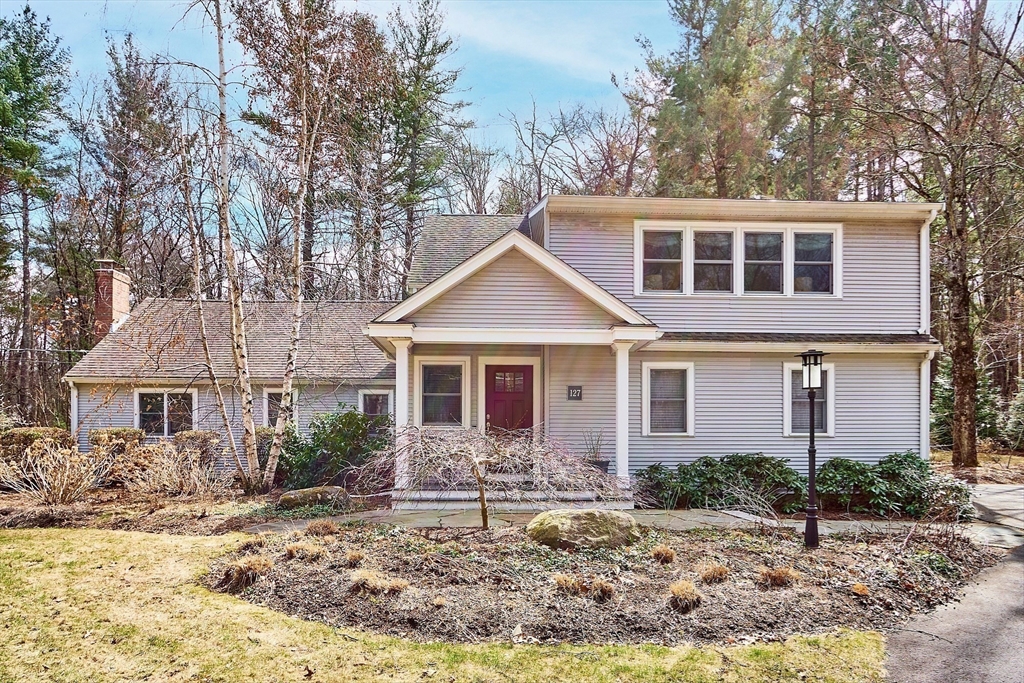 Gorgeous home with soaring ceilings, updated everything in the past decade- in an incredible setting. The stone wall borders White Tail Conservation Land. Inside and out has been curated with nature, elegance, efficiency and comfort in mind. Gardens, the huge Acton Woodworks custom Kitchen designed for multiple cooks, DR with wood burning Fireplace, the vaulted living room with built in bookcases- all these spaces just beg you to linger! Enjoy the warmth, the quiet, the light. This home is a retreat from all you need respite from. That Primary Suite (SWOON!) is an enclave of beauty & considerable well designed storage with peaceful tree top views! Those stunning staircases to separate bedroom suites allow for privacy in two wings of the second floor (Easy to connect if desired). The gazebo has electricity to allow for lighting- extend those summer evenings! That first floor home office with closet doubles as a guest room too. Award winning schools, professional landscaping, irrigation.